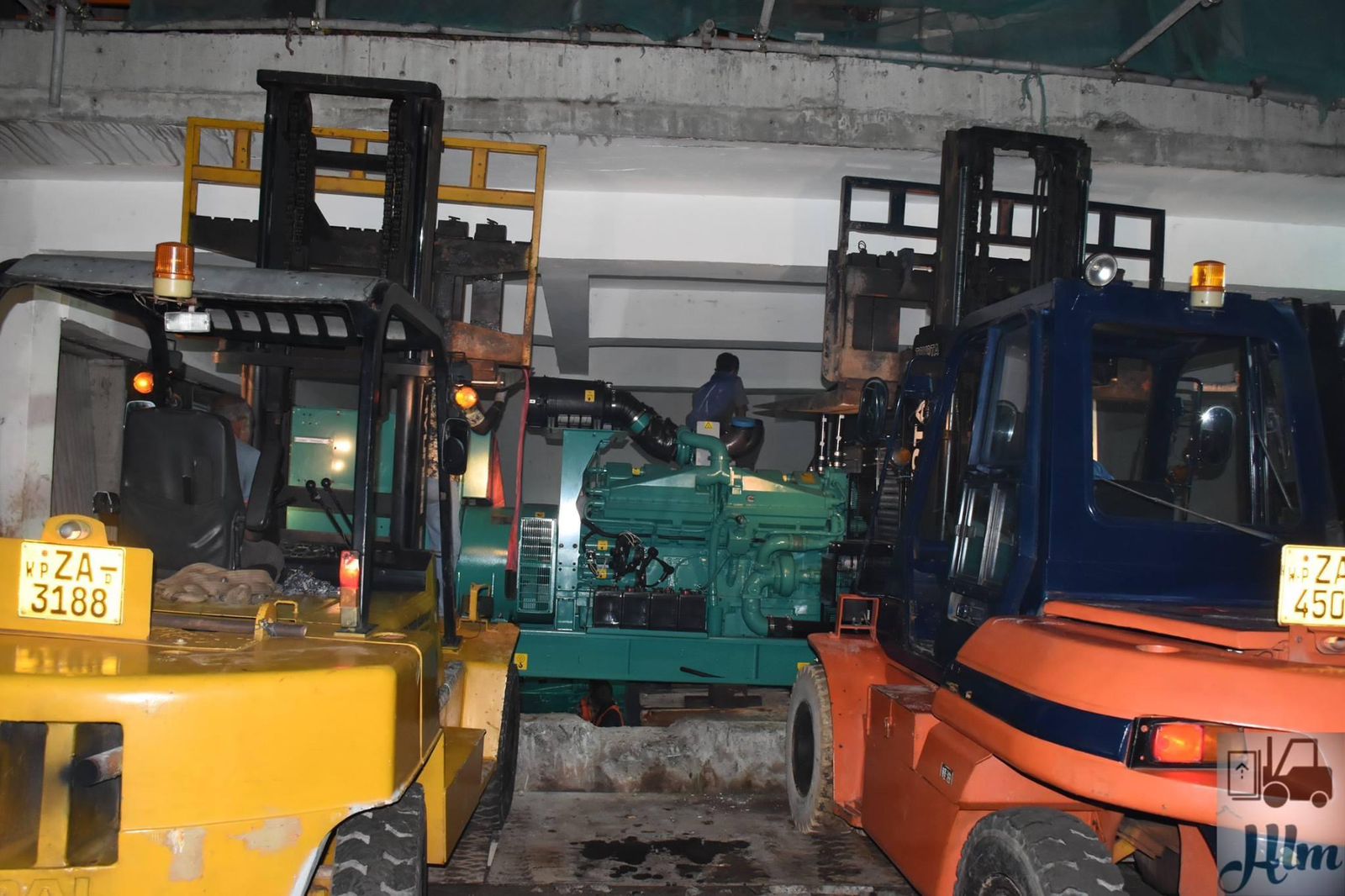 Working within a tight-access route and confined, we deployed two forklifts to maneuver the generator safely along the critical path. The most complex part of the job involved a careful 90-degree rotation to align the generator for final placement on the designated plinth inside the generator room.